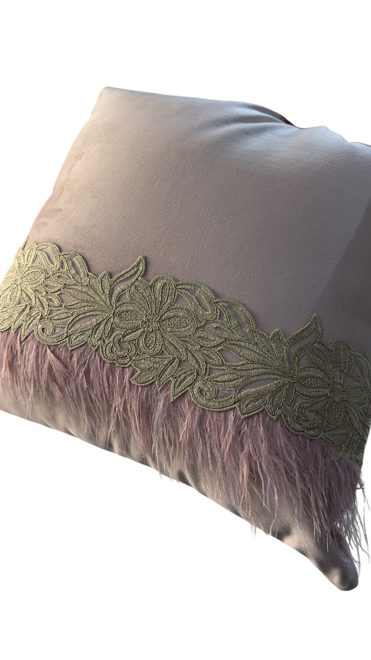 Cuscino velluto, piume e pizzo - Fiori di Lena