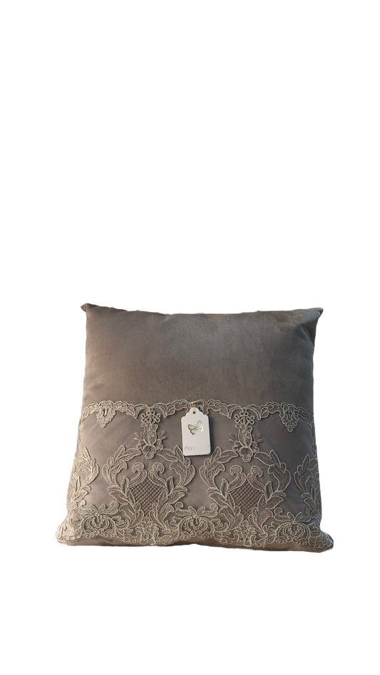 Cuscino velluto e pizzo 45x45- Fiori di Lena