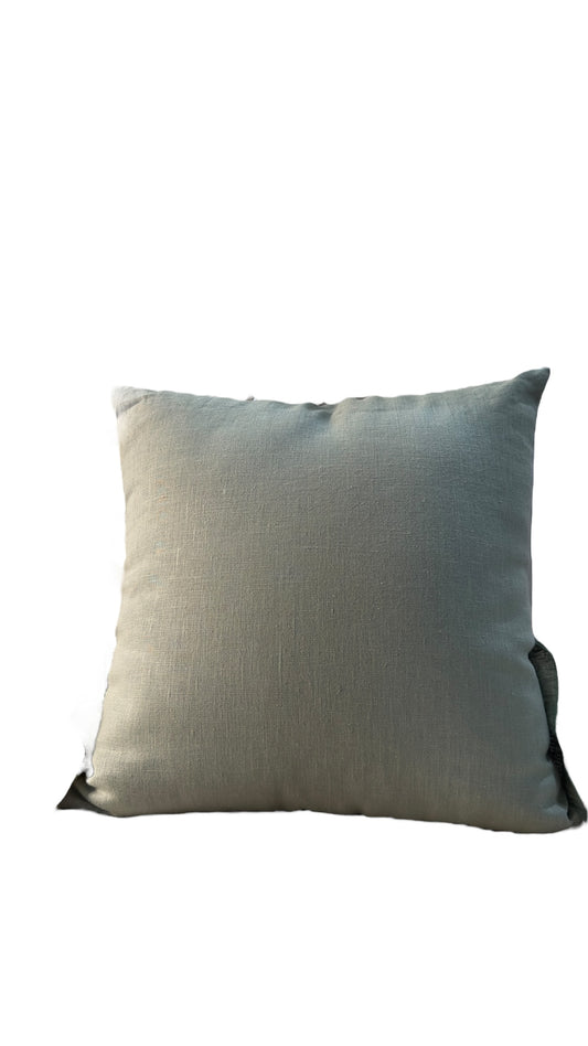 Cuscino lino e pizzo verde 45x45 - Fiori di Lena