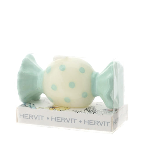 CANDELA CARAMELLA BIANCO/VERDE 9XH4CM LACCATA SCAT.PVC TRASP. E NASTRO ORGANZA VERDE