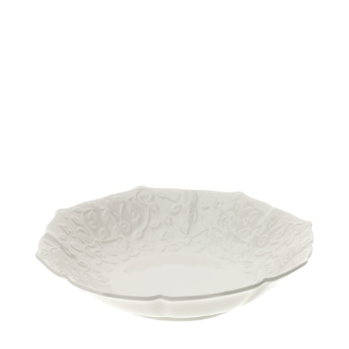 CIOTOLA OTTAGONALE PORC.ROMANCE DIA.18CM BIANCA RILIEVO ROSELLINE SCATOLA REGALO