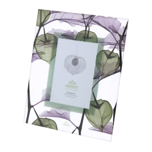CORNICE VETRO ALKEKENGI VERDE 24X29CM BASE TRASP.F.TO FOTO 12,5X17CM RETRO MDF S.REG.