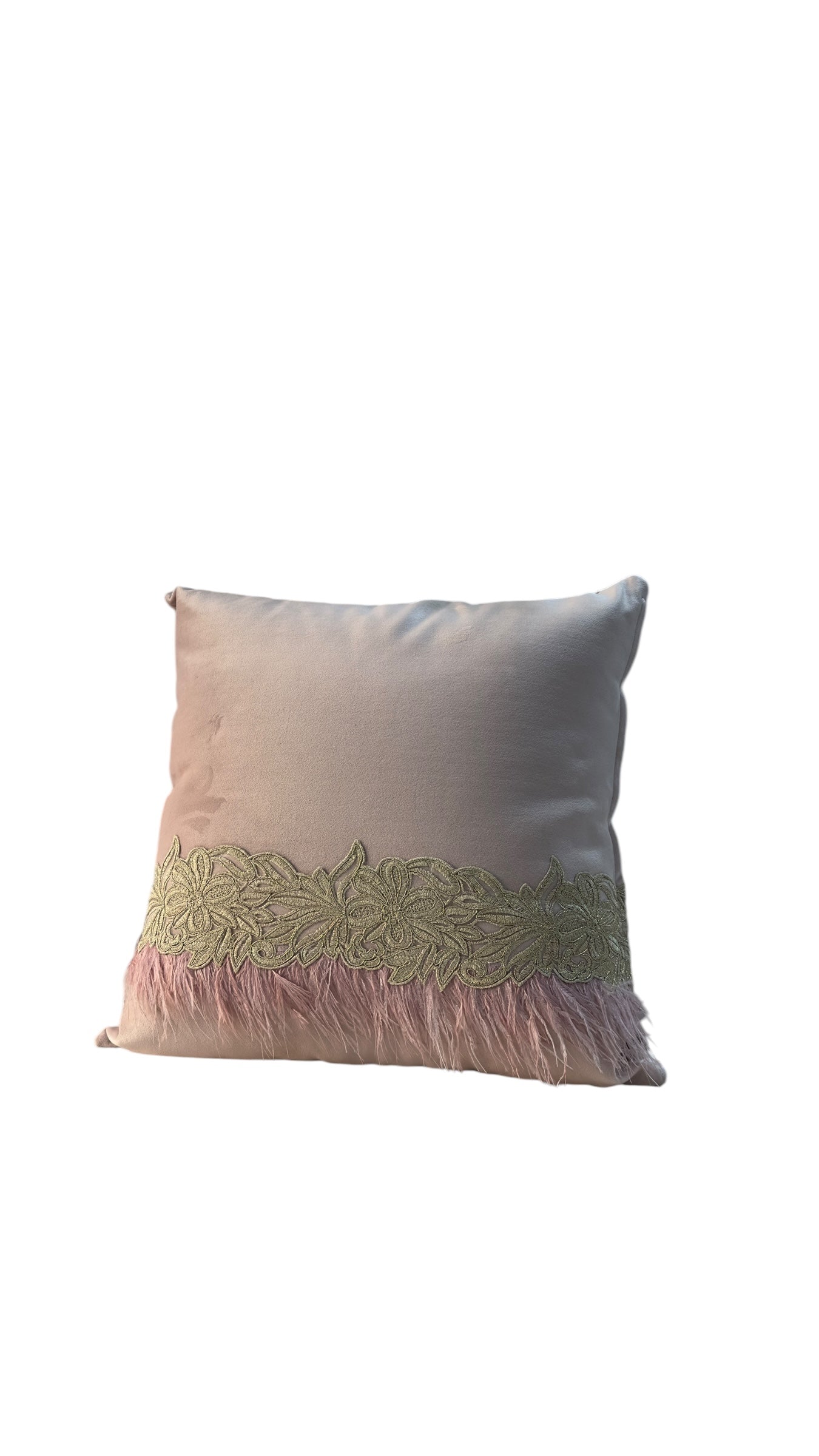 Cuscino velluto, piume e pizzo - Fiori di Lena
