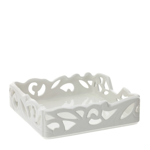 Hervit Portatovaglioli Jolie in Porcellana Bianca Traforata a Mano - 20x20cm