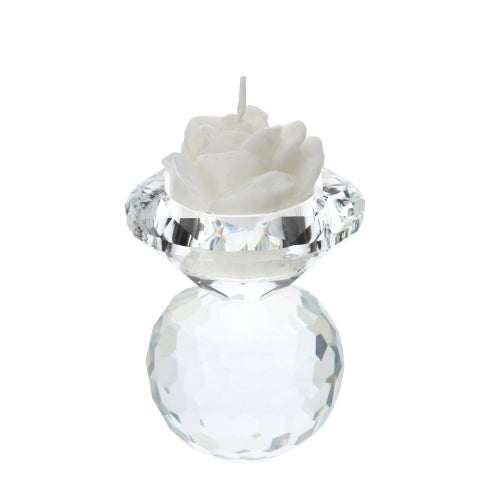 PORTATEALITE CRISTALLO TRASP.DIA.7X8,5CM BASE SFERA SFACCETT.C/CAND.ROSA BIANCA SCAT.REG.