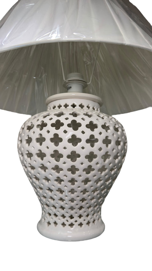 Hervit Lampada Tavolo Jolie Porcellana Traforata Bianca Cappello Avorio Plissettato - 65cm